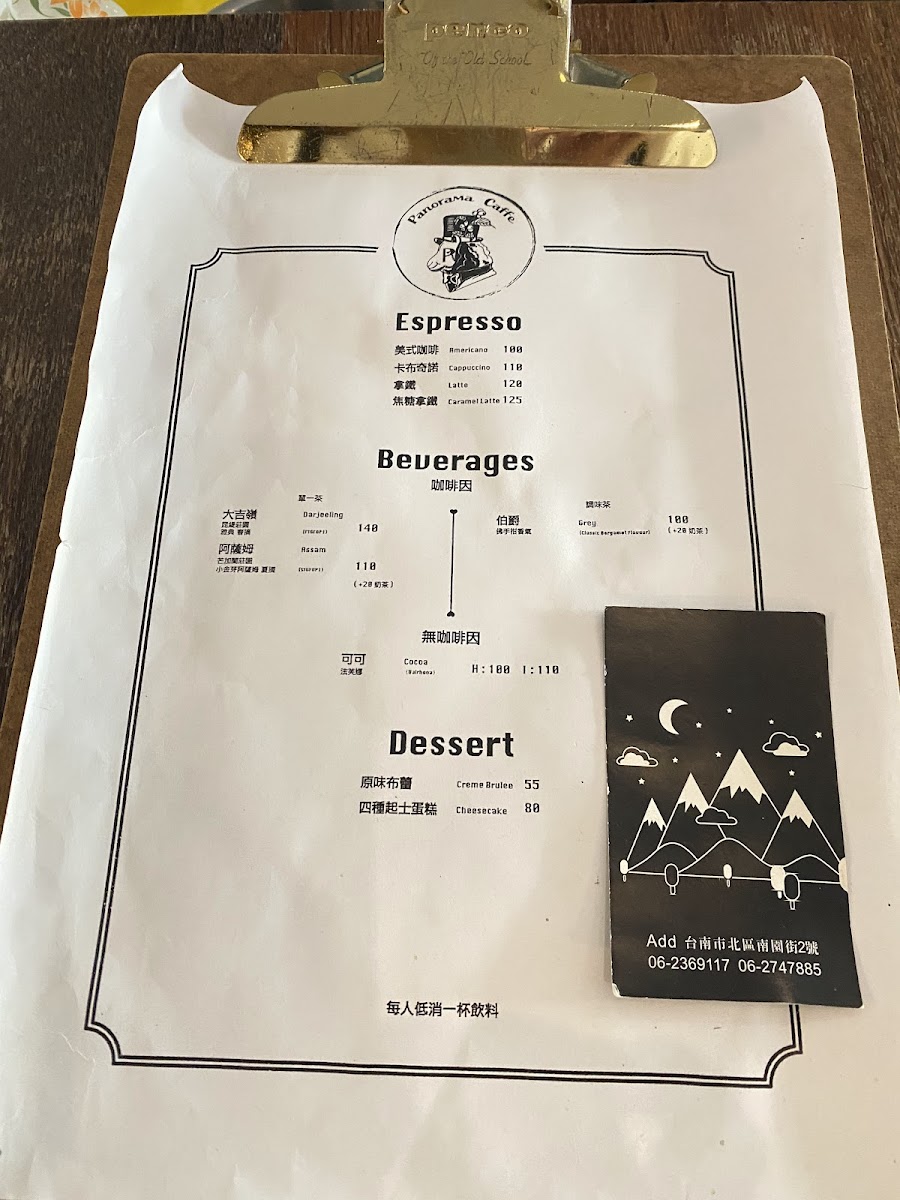 Panorama caffe Menu